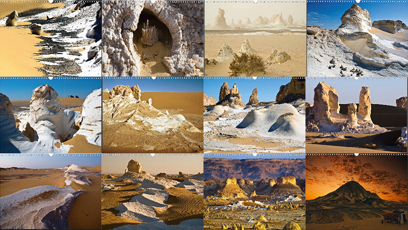 Der NP Weisse Wüste in Ägypten, ca. 500 km südlich von Cairo zwische den Oasen Bahariya und Farafra gelegen, ist stets eine Reise wert. Die weltweit einzigartigen, aus dem ehemaligen Meeresboden heraus erodierten Kreideskulpturen und Felsen erscheinen im wechselnden Licht immer wieder neu. in den Kristallbergen im Norden findet man große Calcitkristalle und weite Dünenlandschaften.