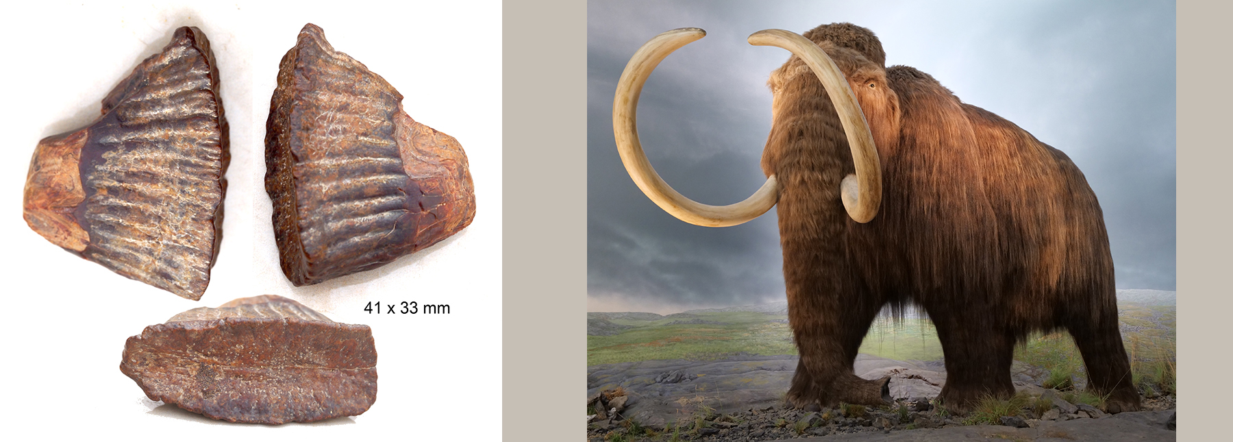 der Zahn eines Wollmammut-Jungtieres (n. Google Lens) wurde am Gebel Magdi in Bahariya gefunden